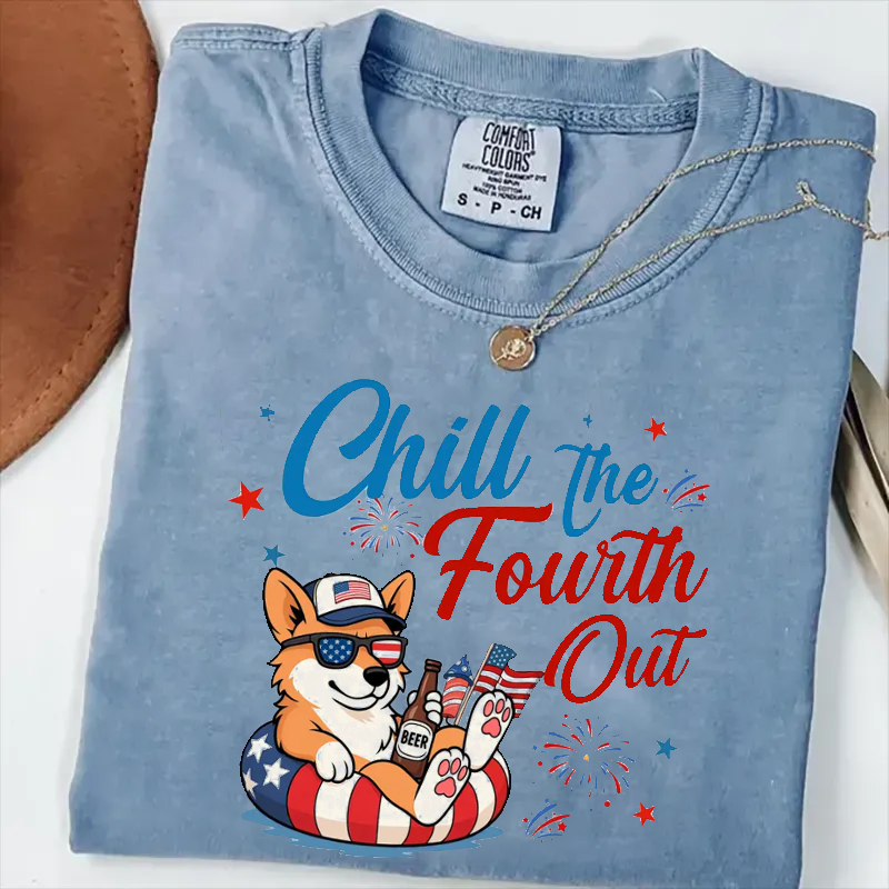 Chill The Fourth Out Cute Corgi T-shirt