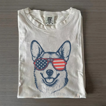 Corgi red white and blue patriotic T-shirt